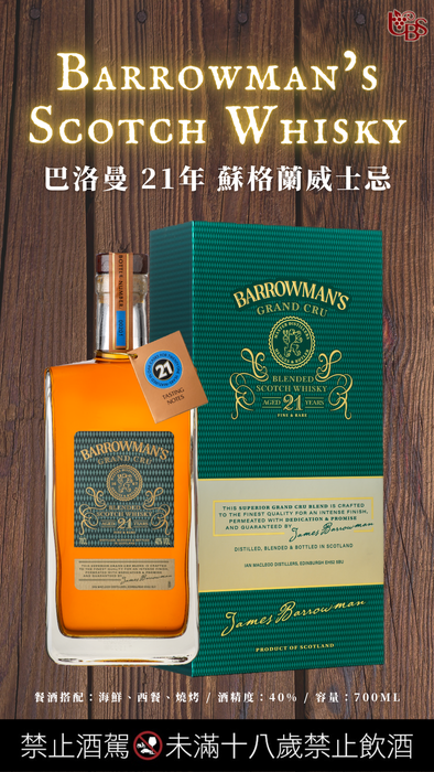 巴洛曼21年蘇格蘭威士忌,嚴選英國優質麥芽、酵母、使用先進設備,在橡木桶陳年21年以上,釀造獨特風味,品質無人能比!